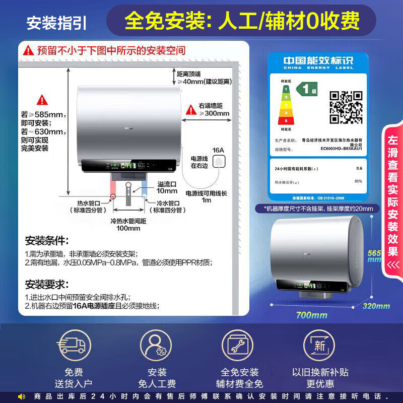 海尔统帅的热水器是最近的新品,首发时候买的,今天刚安装好,颜值高,适合小户型,价格还跟优惠,热水器很智能,还能听音乐,太好啦
