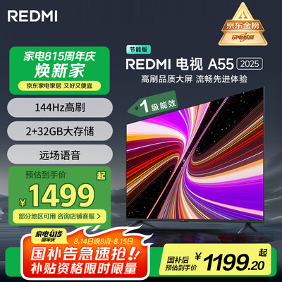 小米(MI)电视55英寸 2025款 120Hz 2+32GB 小米澎湃OS 平板电视Redmi A55 L55RB-RA以旧换新 目前活动价:1499元!
