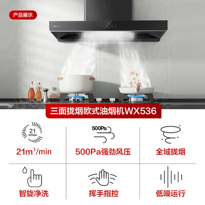 万和(Vanward)【小双翼WX536· 深腔三面拢吸】顶吸欧式T型抽排油烟机21风量爆炒大吸力家用国家补贴20%以旧换新目前活动价:1118.4元!