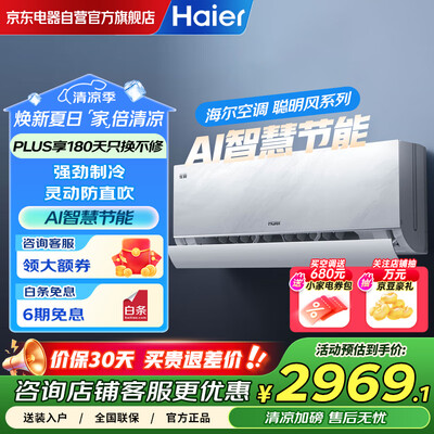 海尔(Haier)空调 星爵1.5匹家用变频挂机新一级能效冷暖节能空调壁挂式KFR-35GW/W500-1套机目前活动价:2639.2元!
