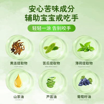 修正日常护理买给小孩戒吃手指,味道很苦,但就是戒不掉产品包装精致美观大气,目前用着非常不错,真实评价,希望可以帮到集美们自己试了一下,很苦。给孩子涂了一次,没有反应,还是吸手指。还没用过,不知道效果怎么样。但是娃以前用的时候感觉效果一般。