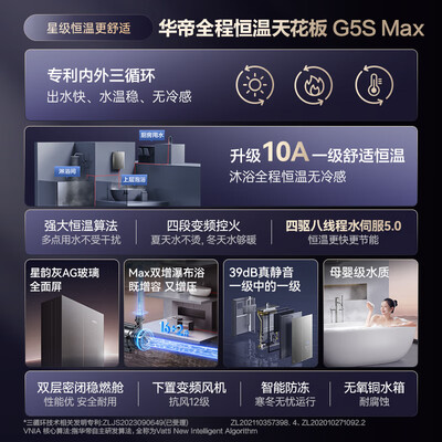已经安装好了,老爸说非常不错,家里老机器换新,机器刚刚好能卡进柜子里,安装师傅也很有耐心。推荐!买了非常满意,看起来应该质量好哦,买一个用质量好下次还会来买的,发货也快的,非常好送货师傅,安装师傅都很负责。热水器颜值很高。零冷水太方便了,加热快,噪音小。很棒帮自己家亲戚买的自己家也用华帝无冷感G5max品牌,值得推荐很棒质量也值得信赖,五星热水器已经安装好了,外观漂亮大气,噪音不大,制热水也很快。性价比超高!17年我家买的同款还3000多呢!