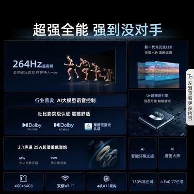 海信(Hisense)电视85E3N Pro 85英寸 264Hz高刷 智能高亮 AI语音 超薄智慧屏大屏平板电视机 目前活动价:8413元!