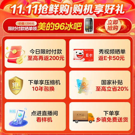 美的(Midea)熊墩墩Pro600法式多门四门双系统嵌入式除菌一级能效制冰家用电冰箱国家补贴BCD-600WUFIPZM(E)白目前活动价:?9?元!