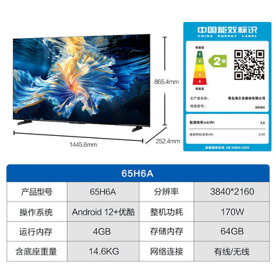 海尔电视65H6升级版配置参数: