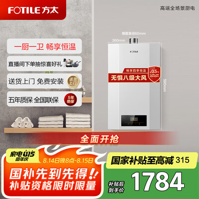 方太(FOTILE)【国家补贴以旧换新】16升天然气燃气热水器 家用厨房强排水伺服变频恒温即热沐浴洗澡S16D1-FR目前活动价:2064.65元!