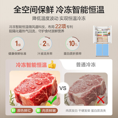 507Ultra主打超薄嵌入,厚度只有62厘米,比普通冰箱薄一大截。特别适合想做嵌入式厨房的家庭,门板还能定制,整体颜值很高。保鲜技术用的是全空间保鲜,蔬菜水果放一周还能水灵灵的。冷冻能力很强,一天能冻透16斤肉,适合爱囤货的家庭。但有人反馈偶尔会有轻微噪音,对声音敏感的人可能要留意。