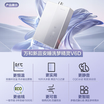 万和(Vanward)【安睡洗V6】【国家补贴15%】16升燃气热水器天然气 一级静音节能 双循环水伺服恒温下置风机V6D16目前活动价:1264.8元!
