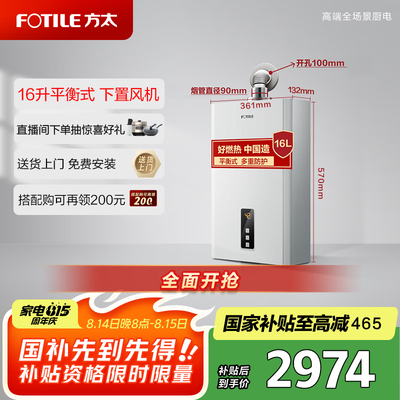 方太(FOTILE)【国家补贴以旧换新】16+1升燃气热水器天然气 家用厨房强排式零冷水增压变频即热洗澡X16F1-FR目前活动价:3059.15元!
