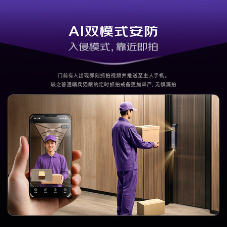 徘徊抓拍,静音模式,虚位密码,防盗模式,电池更换提醒,实时抓拍,可视对讲