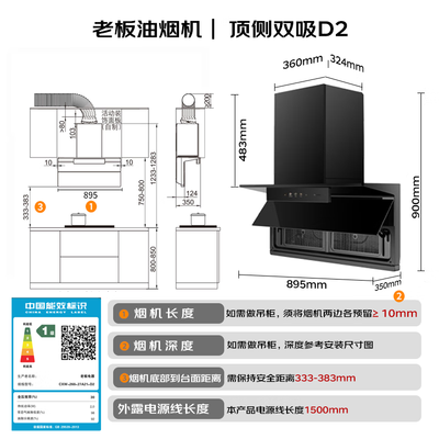 老板(Robam)【顶侧双吸小黑翼D2】超薄抽吸排油烟机D1P升级28家用智能大吸力烟灶联动一级以旧换新国家补贴20%目前活动价:4698元!