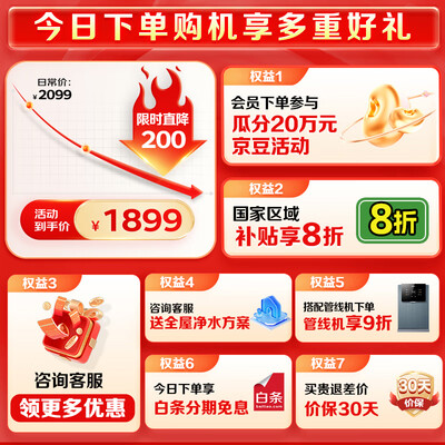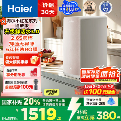 海尔(Haier)鲜活水家用净水机1200G pro 6年RO净饮机厨下净水器3.48L/分钟 HKC3000-R793D2U1国家补贴目前活动价:1399.2元!