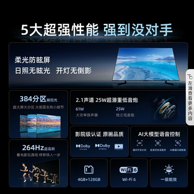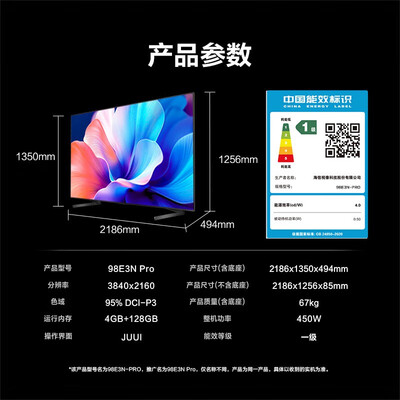 海信(Hisense)电视98E3N Pro【底座安装版】 98英寸 高刷游戏电视 4+128GB 媲美电视98英寸 目前活动价:15514元!