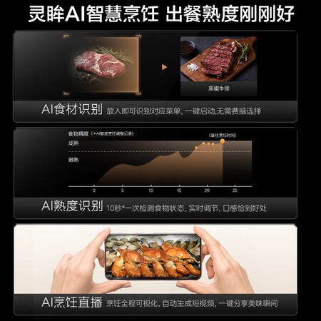 蒸、烤、炸三大核心功能实力出众,轻松驾驭多样菜式。操作界面简洁易懂,新手也能快速上手,做出的食物紧锁水分,鲜嫩可口。最贴心的是自带自清洁功能,省去手动擦洗的麻烦,省心又省力,大幅提升日常烹饪幸福感,真心强烈推荐!特别好看,安装出来的效果非常好,已经用了一段时间了,常用的蒸汽功能也很好用,每天都要用到2次,给孩子做蒸蛋也方便多了,!做饭都变的简单了