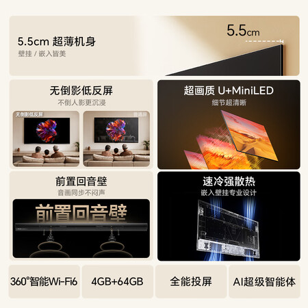 海信电视大薄荷E52Q 75吋 超薄贴墙 无倒影低反屏 前置回音壁 超画质U+MiniLED国家补贴壁纸电视75E52Q目前活动价:?9?元!