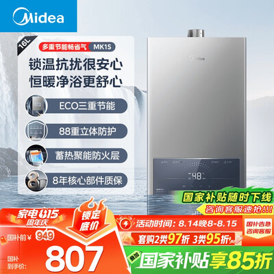 美的燃气热水器JSQ30-MK1S价格:832.15元!