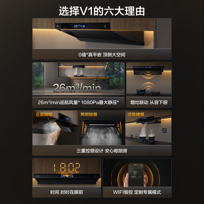 方太(FOTILE)V1抽吸排油烟机家用 国家补贴20%以旧换新 顶侧一体0缝真平嵌 26风量黑色烟机(可搭配燃气灶)目前活动价:3759.2元!