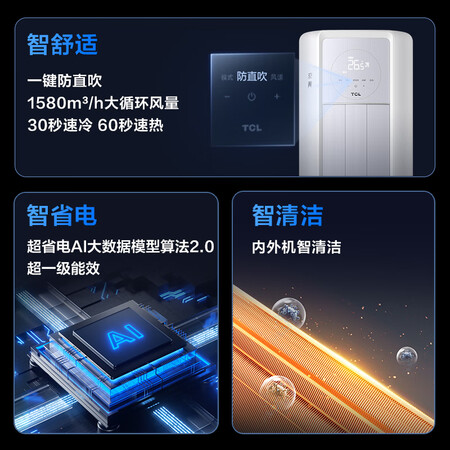 TCLKFR-72LWZG1Ta+B1外形外观:十分美观冷暖效果:制冷效果非常好静音效果:声音很小安装师傅十分细心,负责,满满的好评,下次还会回购外形外观:颜值高冷暖效果:制冷快静音效果:静音产品特色:不错空调收到了,谢谢,这个价格买到真的很划算。价格买到这么好的。非常不错。后续如果还有优惠活动。会继续再来的。真的很好,性价比也很高,质量也很好,物流也快啊!非常满意!#新一代舒适空调#高颜值#冷风不直吹真的挺好的 而且外机没声音制冷效果也很好一下子就冷了 可以的