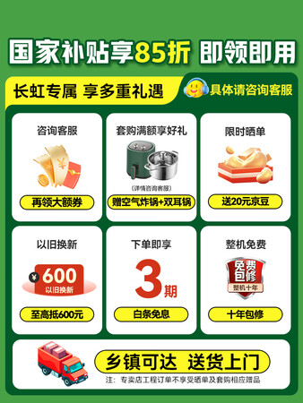 长虹(CHANGHONG)大2匹新能效超省电变频 家电国家补贴 WiFi智能冷暖挂机空调KFR-51GWZDTCW2+R2以旧换新到手价格2299元。
