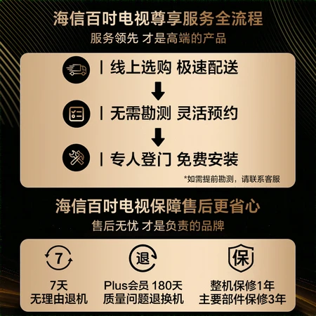 真的太赞了,画质非常清晰,细腻,超4K,音效也超赞,嵌入式安装很上档次,送装一体,服务周到 挑了很久的电视,最后选择了海信,海信电视很满意!送货很快,上门送货同时就安装!很好很方便,安装比较速度,很快就好了,安装师傅服务态度很好!送装一体好。京东和海信联合开发的m100电视效果杠杠的,清晰度高,音响效果好。张师傅认真负责不管是成品保护还是清洁卫生都做得很到位。
