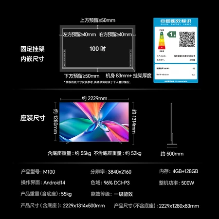 裸机尺寸(不含底座): 厚83mm 高1280mm 宽2229mm