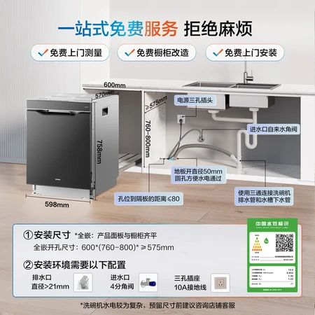 颜值很高,和自己家的橱柜很搭配,容量大,满足碗筷,锅的洗涤,安装师傅很耐心,仔细,帮忙解决了安装过程的一些问题,点赞 这款洗碗机真的是厨房救星!容量够大,一家四口的碗筷锅具塞进去毫无压力,高温除菌模式用着超安心。再也不用饭后围着水槽打转,省下的时间追剧、陪娃太香了,性价比直接拉满,闭眼入不亏!