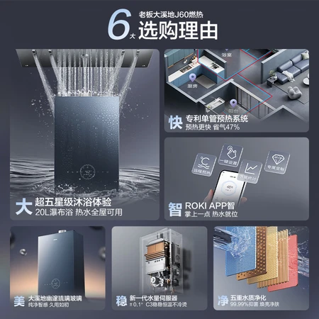 老板牌热水就是好,物流速度很快,外观美观,恒温效果很好,噪音很小,出水速度很快,师傅安装很多细心,安装师傅很专业 师傅今天来安装的 非常好 比以前哪个好太多了 试用了一下太好了 不像以前哪个洗澡的时候检查突然变冷水 一会儿热一会儿冷 现在换的是零冷水的 开水就是热水 冬天再也不怕变冷水了 而且这热水器功能非常强大 以后就选择老板这个牌子的电器