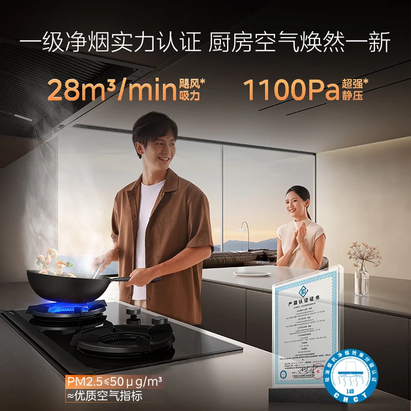 抽油烟机真是厨房救星!28大风量吸力超猛,爆炒无压力,顶侧双吸不跑烟,蒸汽自清洗功能太省心了,变频巡航静音又节能,完美!吸烟性能非常好,噪音很小,面板不容易脏清洁很方便,使用简单方便,手机手机APP上操作简便,可以很方便的了解状态。这款油烟机的吸力强劲,风量28,风压11000Pa,开启后爆炒的油烟能够及时吸走,不会飘得满屋都是。另看中的一个主要功能是机器自清洁,全自动高温蒸汽洗,保持内部清洁,不会因顽固油污而影响吸力。