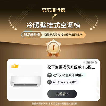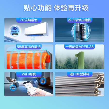 松下空调套装 1级1匹纳诺怡除菌挂机ZY26K410+1.5匹原装压缩机ZY35K410+1级3匹除菌圆柜ZY72F310N到手价格15304元。