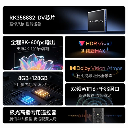 不得不夸夸腾讯极光盒子7S,外观小巧精致,不占地方。它的功能超强大,8K高清播放让画面细节满满,色彩也很鲜艳。杜比视界全景声和DTS:X带来沉浸式的视听享受,仿佛置身于场景之中。4+128G的配置,日常使用完全足够,真心推荐 外观小巧玲珑,开机连接遥控,按步骤使用后操作就可以观影了。下载速度快,应用妙安装。开机速度快,无广告。画面非常流畅,不卡顿,观影清晰度非常好,音质也非常棒,客服服务态度很好,物流很快。