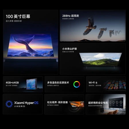 电视体验超预期!必须实名夸赞京东配送安装的万师傅--专业又暖心!他准时抵达,细致验机,安装时精准调整支架角度避免反光,主动整理线路并演示4K画质、杜比音效和语音控制连老人模式都贴心设置好,彻底打消使用顾虑。电视本身100英寸巨幕震撼,色彩细腻如临其境智能响应迅捷。但更想夸京东的“即送即装”服务万师傅团队让大屏安装零操心,从开箱到观影一气呵成。强烈推荐:选小米巨幕+京东服务,闭眼入不踩雷!