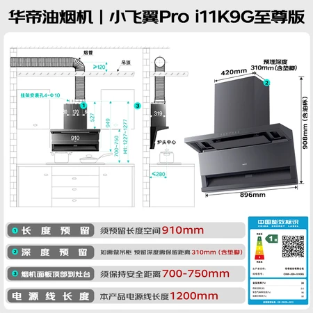 烟机安装尺寸: 900±5mm
