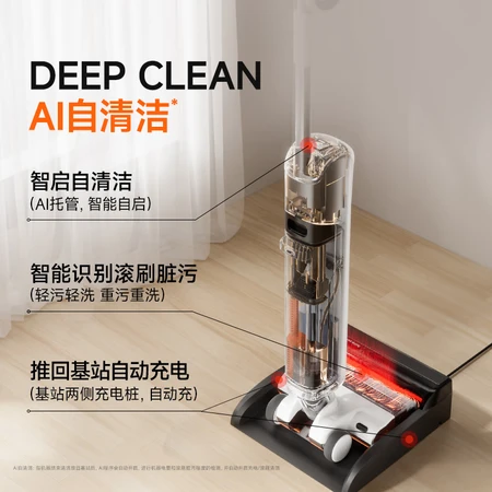 特色功能: 毛发防缠绕 垃圾干湿分离 除菌 基站款 AI 双向助力 一键自清洁 180°平躺