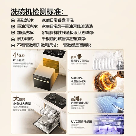 这款洗碗机性能可以,洗净力强,节能静音,容量大然后还符合我家尺寸,可以手机App程超控,非常的方便,解放双手,省时省力! 一直心心念念的洗碗机,比较了很多家,最终选了海尔Z11max,主要从尺寸和清洁功能考虑,小厨房放不下大的洗碗机,这款灶下直嵌的非常合适,安装完整体感很好。清洁功能中规中矩,基本上都能洗干净,还有自动开门晾干,总体不错!