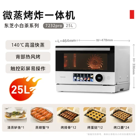 两款东芝小白茶7232pro和7232区别也不是很大的,都可以的啊,比较推荐入手东芝小白茶7232pro,挑了特别久,最后还是选择了东芝,试了一下,蒸的效果还挺不错的,微波热菜很快,后续再试试烘培和空气炸,厨房小选这种综合的还是比较节省空间。 微蒸烤一体机收到了,京东发货神速,包装完好配件齐全。机器颜值很高,操作简单,使用方便。随机配上多种食谱非常帖心,期待好好学习做出美味佳肴!机器买回来之后特别精致 东芝大品牌放心用 功能也特别齐全,上面的按钮还有显示屏,非常有质感 很不错的一个产品推荐 用料感觉很扎实,很重机器