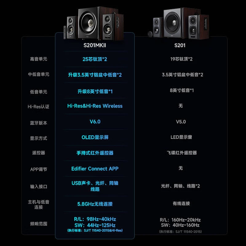 漫步者S201MKII配置参数: