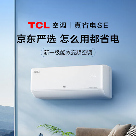 TCL京东联名 1.5匹新一级能效 真省电SE挂机 省电空调冷暖KFR-35GWJD21+B1国家补贴以旧换新到手价格1699元。