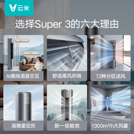 云米(VIOMI)米家APP 3匹 家用立式 Super3 新一级家电国家补贴 劲省电 智能语音柔风柜机 KFRd-72LWY2YD1-A1到手价格5799元。