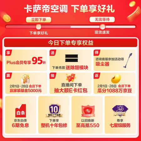 送货超级快。安装更快,当天收当天安装,测试了一下,效果非常好,也很静音。一级能效空调,性价比很高。贼啦舒服,收到很快,收到当天就安装上了,再也不用冷了,真棒?外形很好看,以为是金色边的原来是全白的 惊喜,趁着双十一活动力度大,安装师傅态度很好!希望使用感好很好送货上门。安装也不慢很好。风价格适中。体验很好 推荐购买旗舰版制冷效果非常好,空调开启后室内温度很快降低。机子外形美观,冷风不直吹,热风暖脚,静音使用舒适