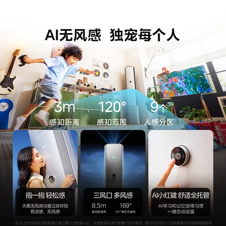 家里装的都是美的的无风感空调。贴壁环绕风,风量大全覆盖。毫米波雷达,多人识别感知。左右分区分控,母婴级认证,颜值担当不错。 有凉感无风感。母婴级房间家电认证,适用特殊人群。精准控温,节能效果好。噪音低,全包安装值得信推荐。 这空调安装后简直像给家里装了个“移动小太阳”,制冷效果杠杠的,一开就凉快得不行。噪音小到几乎听不见,晚上睡觉超安心,省电又安静,真是居家必备神器!
