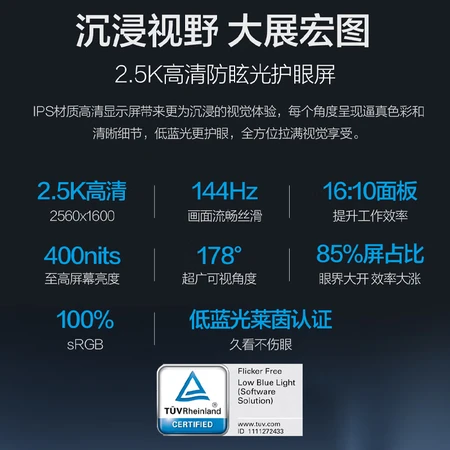 屏幕特性: 高分辨率(2K以上) 高刷新率(120Hz以上) 高色域(100%sRGB) 高屏占比(≥85%)