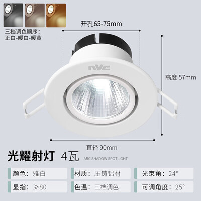 雷士 (NVC)WHTD04T-01牛眼射灯 LED射灯全铝材天花灯 雅白 4瓦三色可调 开孔65-75mm到手价格30.5元。