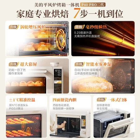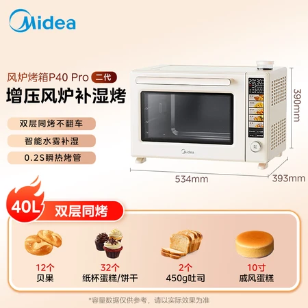 不少朋友有如题疑问,这里分享下美的P40二代和P40Pro二代区别不是很大的,都差不多的哈,建议选择美的P40Pro二代,烤箱到了,感觉挺大的,都有点快放不下来,也送了一些烘焙的小礼品,感觉还不错,物美价廉,期待后期的使用效果,还没有插电,没有使用,等使用过后再反馈 质量非常好,质感一流,配置很高,功能强大,第一次用风炉烤箱,出来的效果非常好。真的太实用了!40L大容量满足家商两用,风炉平炉二合一双模式,三层同烤不串味。独立温控精准,发酵、风干、解冻功能齐全,私房烘焙或日常烹饪都适配。操作简单易上手,加热均匀,颜值与实力兼具,性价比超高,值得入手!