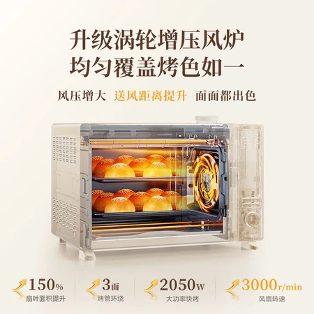 这台烤箱把风炉和平炉的功能做得很实在,特别是多层同烤时温度稳定,像家里办喜事一次做几十个蛋黄酥也不用分批忙活,省心不少。水雾功能对欧包的延展性有帮助,这点在千元档里确实少见 这款烤箱太值了!颜值简约耐看,摆在厨房超搭。操作简单,控温精准,新手也能轻松驾驭。烤鸡翅焦香多汁、蛋挞外酥里嫩,加热快还省时间。不粘内胆一擦即净,容量够日常使用,性价比拉满,闭眼冲不亏~