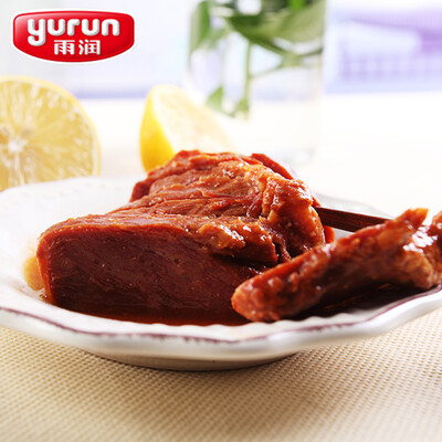 雨润200g金陵原汁牛肉买了五六次了,是真牛肉!价格优惠,吃的很不错。味道不错,就是肥肉较多,爱吃肥肉的人可以太好吃了,干净,香?F。半只猪蹄,皮软带筋。蒸热了吃,肉冻可拌饭或拌菜,味很香。很不错的雨润蜜汁叉烧肉,值得购买和推荐,快递小哥辛苦了!