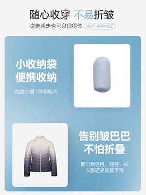 波司登(BOSIDENG)女士羽绒服是我喜欢的颜色,至于质量需要等到月底外出才能真正体验一把哈哈这个羽绒服是我挑选了很久才选中的,尤其是这个渐变色,很不错,同事也说很好看的配色。轻薄,柔软,保暖效果也不错。穿起来很舒服。产品真的超级棒,下次还会买的,愿越做越好,非常好的购物体验非常好的一款产品,非常喜欢,质量也非常好非常好,物美价廉,值得购买,快递很快,下次还会购买。