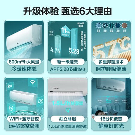 海信(Hisese)大1.5匹 易省电 空调挂机 大风量新一级能效变频冷暖节能壁挂式家电国家补贴20% KFR-35GWE291-X1到手价格1999元。
