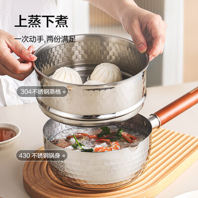 京东京造日式不锈钢雪平锅18cm 小奶锅 辅食锅 带304不锈钢蒸格锅盖到手价格79.9元。