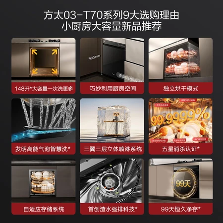 这2个都不错的啦,方太03-T70和NJ01S洗碗机哪个要好些,二个都挺不错的,款式有些不一样,比较起来区别也不是特别的我比较推荐选择方太03-T70,原来用的就是方太的消毒柜,然后选了这款位置,正好洗了一次,效果也很满意,内壁也没有挂水珠。应该是不能消完,马上就开柜的,还要继续让它烘干。方太的服务非常好,给刘师傅的服务五星好评! 这款洗碗机真的太棒了!清洗效果非常出色,连顽固污渍都能轻松搞定。噪音也很低,使用起来非常安静。推荐给大家!