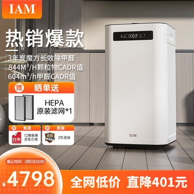 IAM空气净化器除甲醛雾霾细菌 家用负离子消毒 空气净化机 甲醛数值显示 炭魔方3年长效分解甲醛M8到手价格5199.0元。